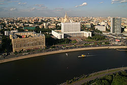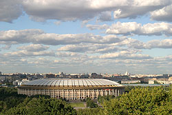auch auf die Moskwa, die Skyline, diverse Kirchen, Hotels und das Stadion. Wie an jedem
