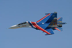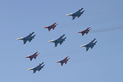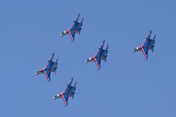 wird nur ganz selten und zu besonderen Anlässen gezeigt. Fünf Su-27 der Russian