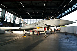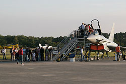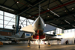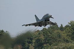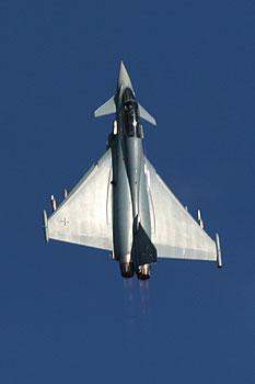 eines Eurofighter; außer den drei genannten sind noch zwei Tornados im Luftwaffenfinish