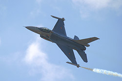 Airshowzirkus zählen kann. Die niederländische F-16 mit Christian